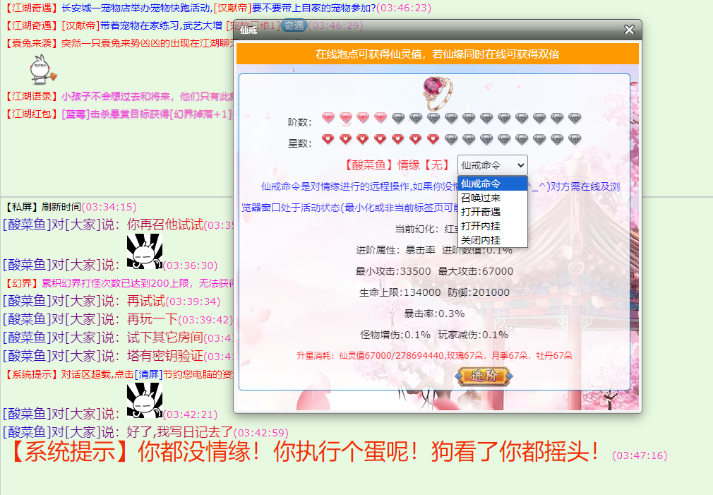 咱江湖里,不论是否结了情缘,都拥有【仙戒】,都可以进行培养属性。